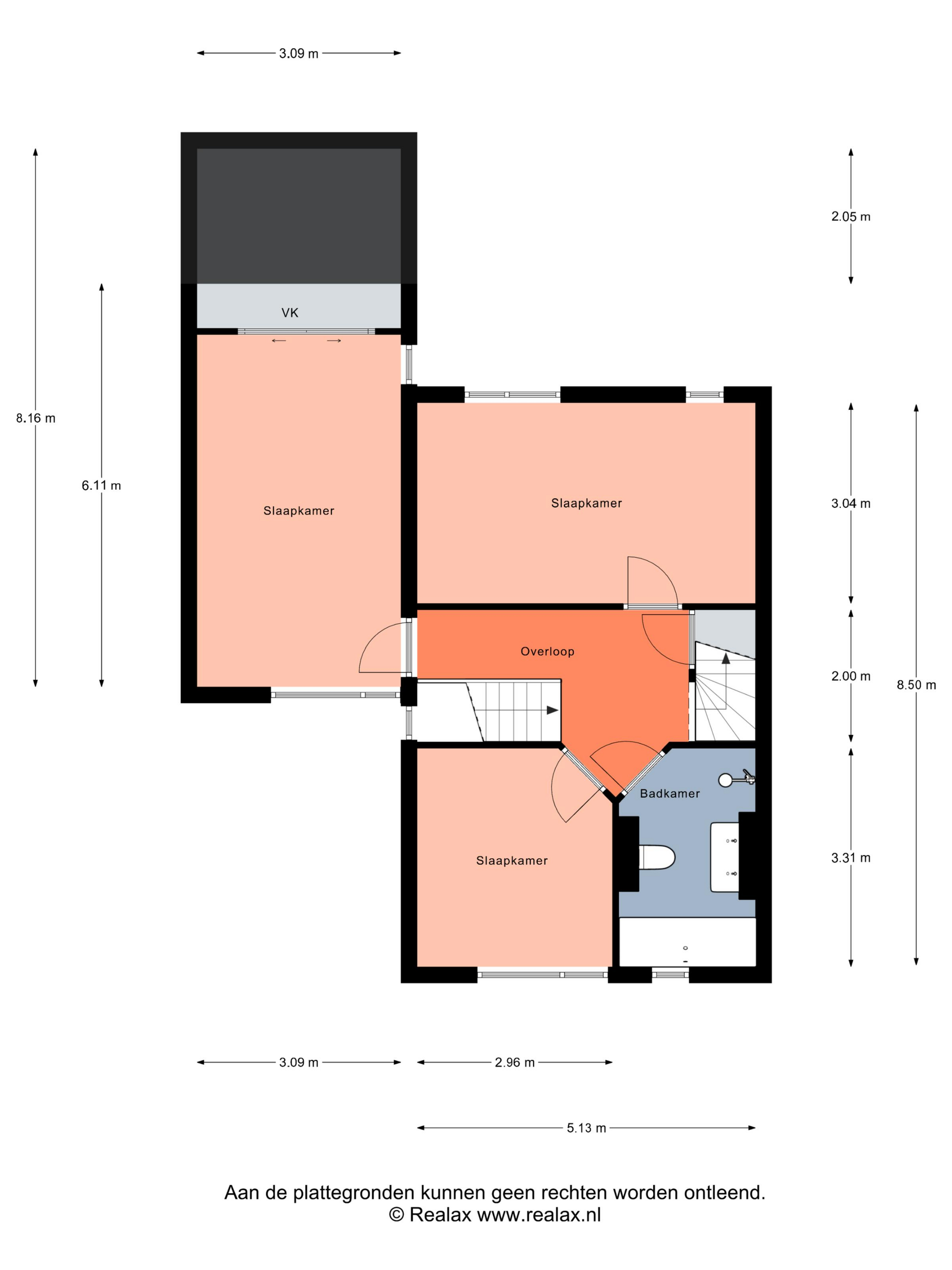 Op de eerste verdieping bevinden zich drie slaapkamers, een badkamer en bergkast.