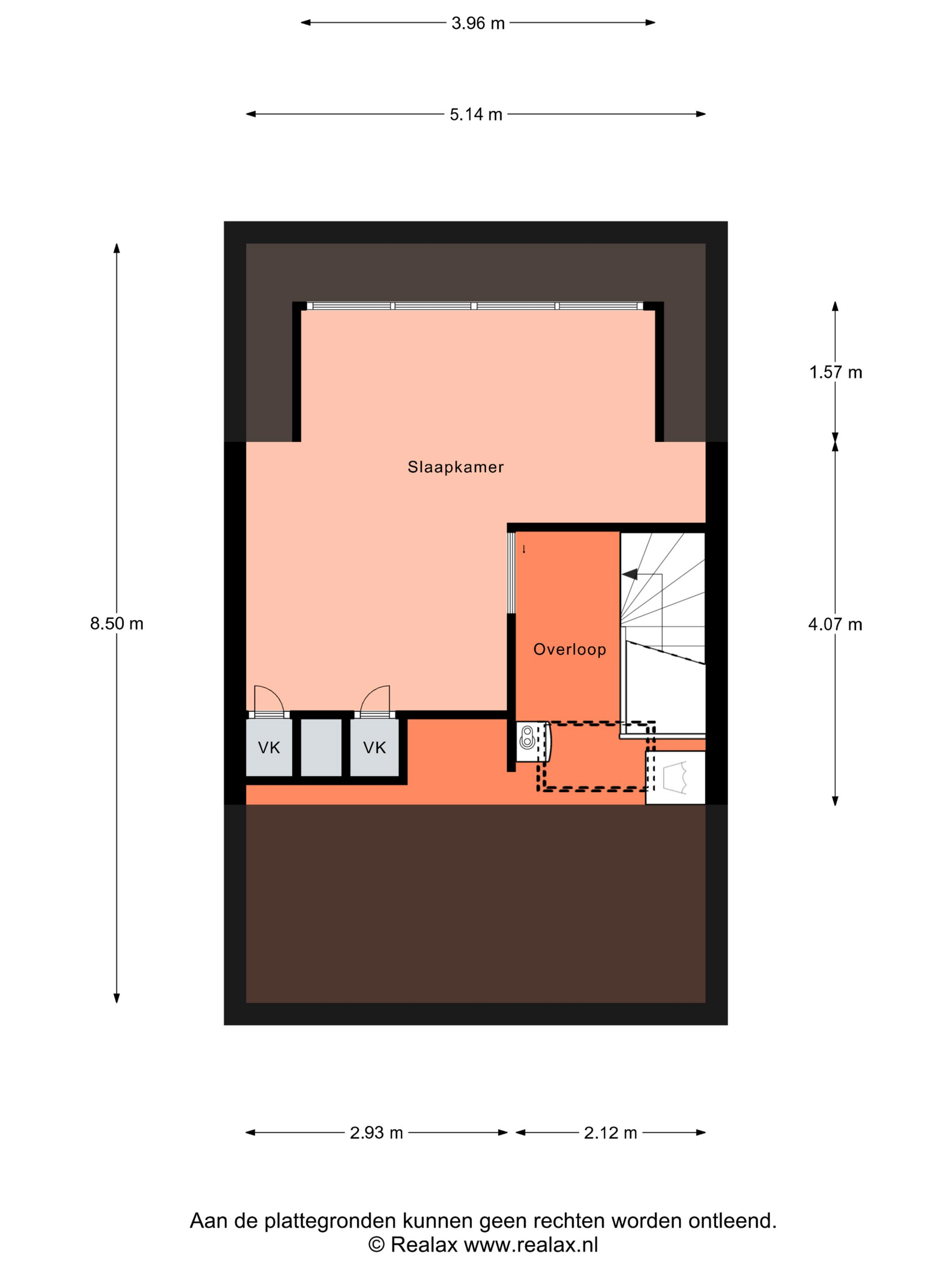 De tweede verdieping is bereikbaar via een vaste trap en beschikt over een ruime overloop met opstelplaats voor de cv-combiketel, de wasmachine en droger. Een groot dakraam zorgt voor veel lichtinval. De ruimte achter de knieschotten is netjes afgewerkt met schuifdeuren, ideaal voor extra bergruimte.