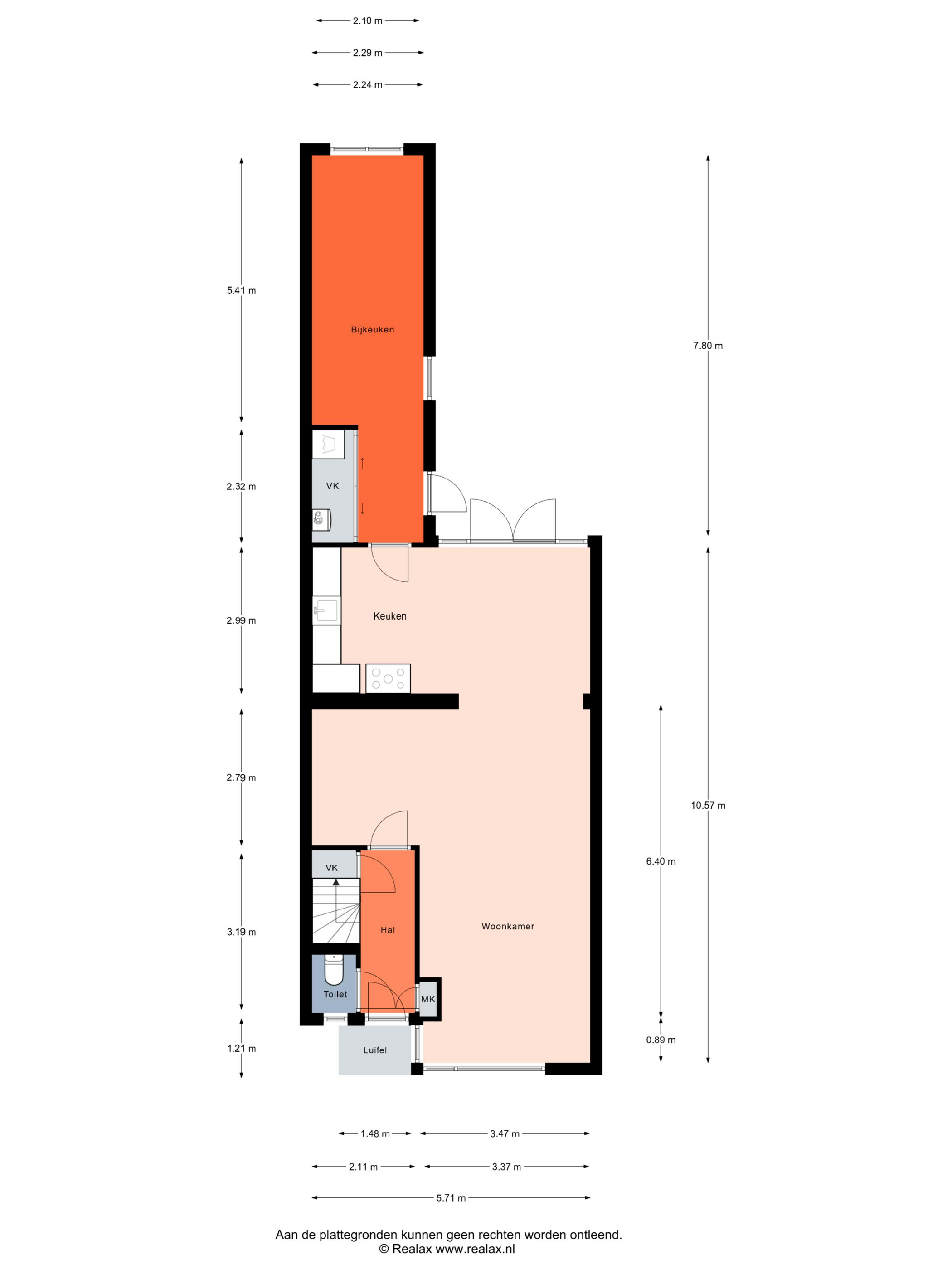 Via de entree aan de voorzijde kom je in de hal met meterkast, trapopgang, kelder en toiletruimte. De ruime woonkamer is voorzien van een eikenlook pvc-vloer in visgraat gelegd (2022) en vloerverwarming. De woonkamer heeft openslaande deuren naar de tuin en staat in verbinding met de leefkeuken, die is uitgevoerd met vanillekleurige fronten, een kunststof werkblad en diverse inbouwapparatuur, waaronder een 6-pits gasfornuis, rvs-afzuigkap en vaatwasser. Vanuit de keuken is de bijkeuken/berging bereikbaar, een praktische ruimte met volop daglicht, aansluitingen voor wasapparatuur en een airco. Hier bevinden zich tevens het werkblad met gootsteen (voorzien van warm- en koudwater), de opstelplaats van de cv-combiketel (Remeha Tzeraa 39C Plus, 2017, eigendom) en de deur naar de achtertuin.