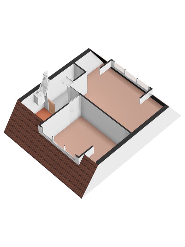 De zolder is verrassend ruim dankzij de dakkapellen aan de voor- en achterzijde (kunststof draai-kiep met HR-glas). Op de overloop vind je een dakraam, de opstelplaats van de cv-ketel (Remeha Avanta Ace, combiketel, bouwjaar 2022, eigendom), de mechanische afzuiging en aansluitingen voor wasmachine en droger. Hier zijn twee ruime slaapkamers gerealiseerd, beide geschikt voor een tweepersoonsbed en over opbergruimte achter de knieschotten. De vloeren zijn afgewerkt met een pvc-houtlook vloer. Via een vlizotrap is nog een praktische bergzolder/vliering bereikbaar.